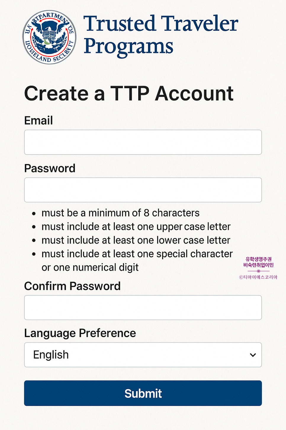 1단계: Trusted Traveler Programs (TTP) 계정 생성