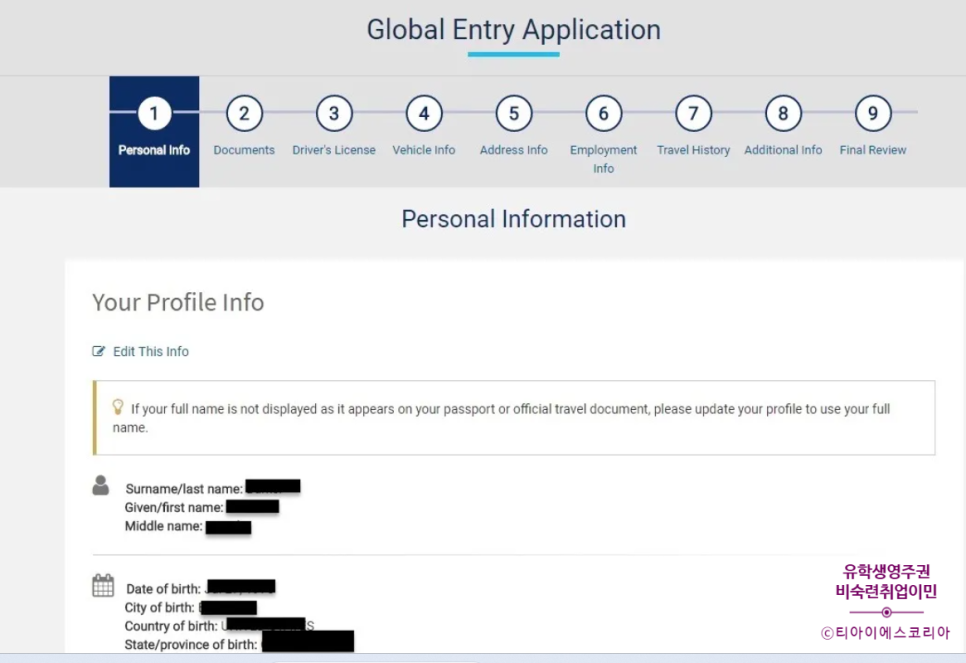 KTTP 승인을 받은 후 CBP 사이트에서 Global Entry 신청