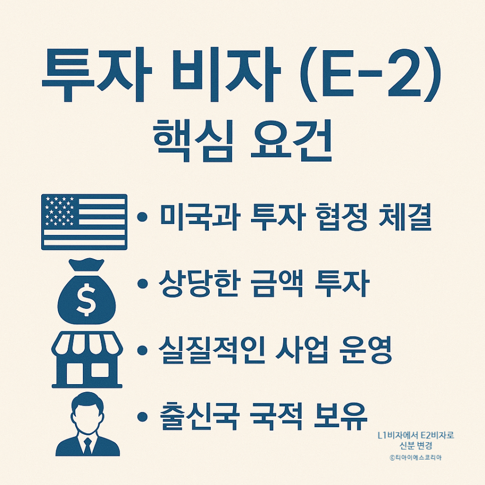 #주재원비자 #L1비자 #E2비자 #미국신분변경 #PERM #노동허가서 #미국투자비자 #미국창업 #미국이민 #티아이에스코리아
